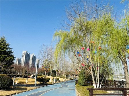 錦和公園位于鄭州高新區(qū)連霍高速與西四環(huán)交會(huì)處,東臨西四環(huán)、西靠須水河、南面新龍路、北貼連霍高速,綠地占地25.3萬平方米、水系占2.7萬平方米,公園內(nèi)櫻花、海棠、紫荊、紅葉李、梨樹、桃樹等苗木目前正值花季。