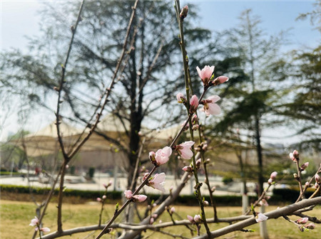 鄭州高新中心體育公園內(nèi)開放的桃花 郭鈺坤 攝