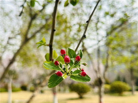 鄭州高新中心體育公園內(nèi)的木瓜海棠含苞待放 郭鈺坤 攝