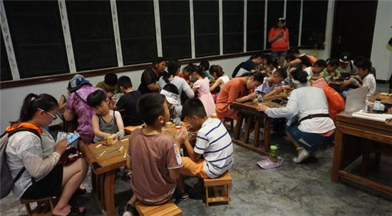 項(xiàng)目三、篆刻體驗(yàn):這是中國翰園今夏推出的新項(xiàng)目,設(shè)在仰圣山圣賢館,環(huán)境幽靜。篆刻老師向孩子們一一發(fā)放了章料、工具,隨后進(jìn)行簡單的教學(xué),手把手教大家完成自己的篆刻作品,短短十來分鐘,就完美完成,小臉綻放出富有成就感的笑容。