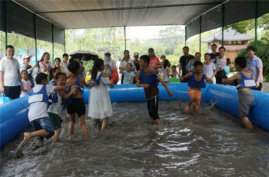 項目六、火山泥撕名牌:這項活動全新也是清涼夏季的活動之一,小孩子們分成兩隊,跳進(jìn)混進(jìn)火山泥的水池里,誰撕的名牌最多就算獲勝,然后一場混戰(zhàn)拉開序幕,個個變成了小泥猴,滿城歡騰,笑聲滿場。