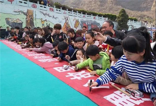 五龍口景區(qū),孩子們在孫大圣的號召下,整齊響亮地跟讀著《中國公民文明旅游公約》,并且積極地跑到臺前簽字,爭先恐后地留下了自己的名字。