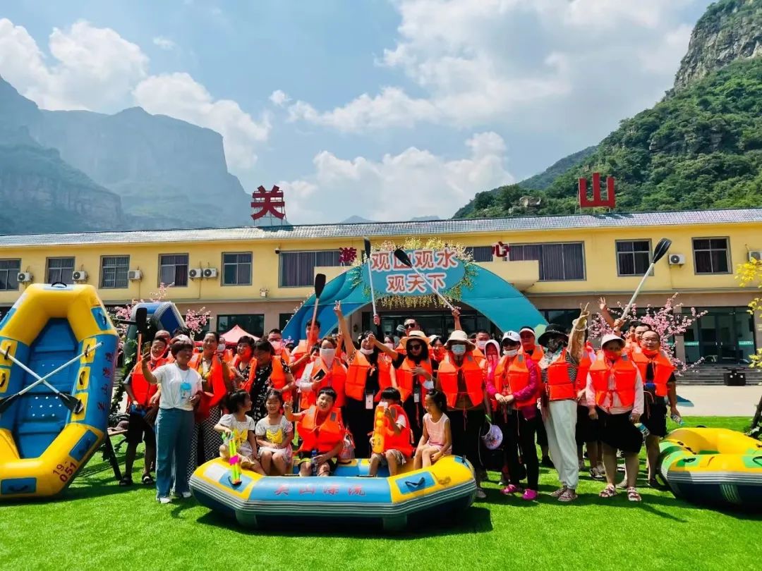 關(guān)山峽谷漂流分為激流區(qū)、水仗區(qū)、戲水區(qū),全長3.5公里,最大落差達150米,漂流全程均為天然泉水,水質(zhì)清澈、驚險刺激,有“豫北第一漂”的美譽。