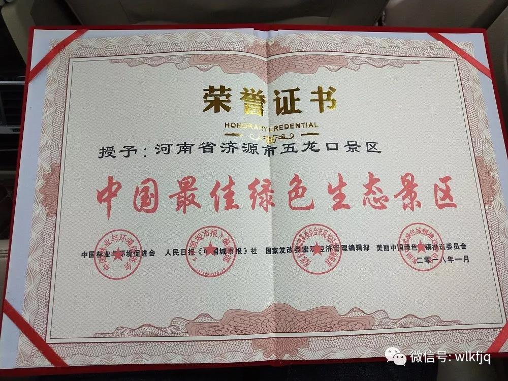 綠色發(fā)展添彩美麗中國(guó) 五龍口景區(qū)再傳捷報(bào)