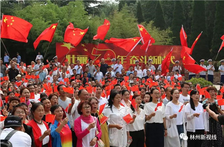 紅旗飄揚(yáng),歌聲飛揚(yáng),心聲獻(xiàn)給黨,愛我大中華。6月22日上午,紅旗渠紀(jì)念館的分水閘樞紐處成了一片激情飛揚(yáng)的海洋。