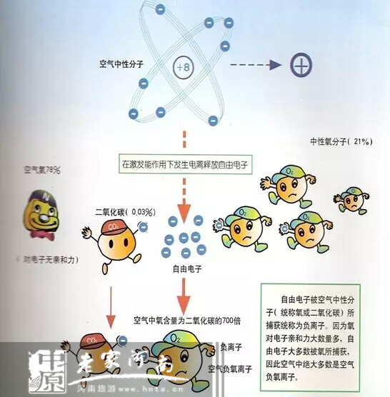 負(fù)氧離子被譽(yù)為“空氣維生素”,能夠通過人的神經(jīng)系統(tǒng)及血液循環(huán)對(duì)人的機(jī)體生理活動(dòng)產(chǎn)生影響。空氣中的分子在高壓或強(qiáng)射線的作用下被電離所產(chǎn)生的自由電子大部分被氧氣所獲得。其中一類因此獲得一些電子的帶負(fù)電荷(電子帶負(fù)電荷)的氧氣離子被稱為“負(fù)氧離子”,又稱空氣負(fù)離子。而小粒徑負(fù)離子,則有良好的生物活性,易于透過人體血腦屏障,進(jìn)入人體發(fā)揮其生物效應(yīng)。