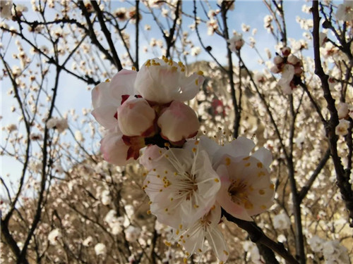“萬樹江邊杏,新開一夜風(fēng)。滿園深淺色,照在綠波中。”云賞朝陽山上盛開的杏花,別有意境。