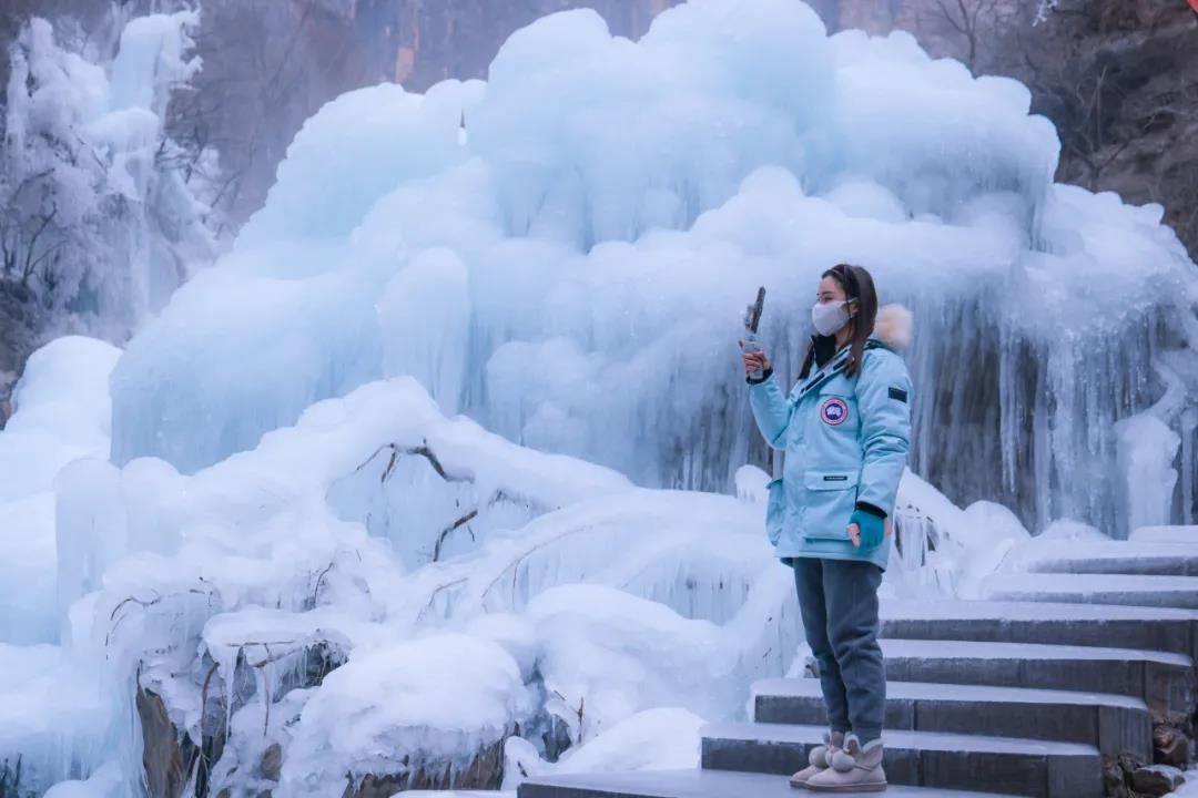 關(guān)注云臺(tái)山抖音直播間,高顏值主播每天帶你云賞雪景冰瀑。