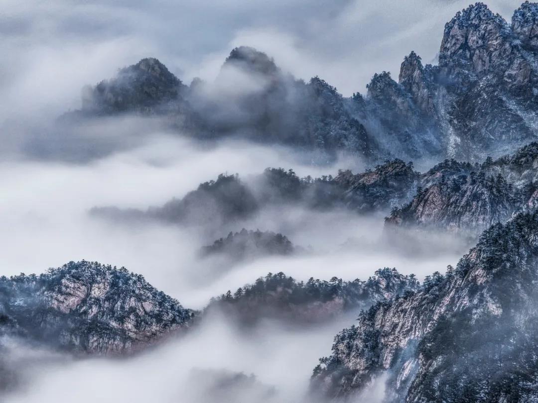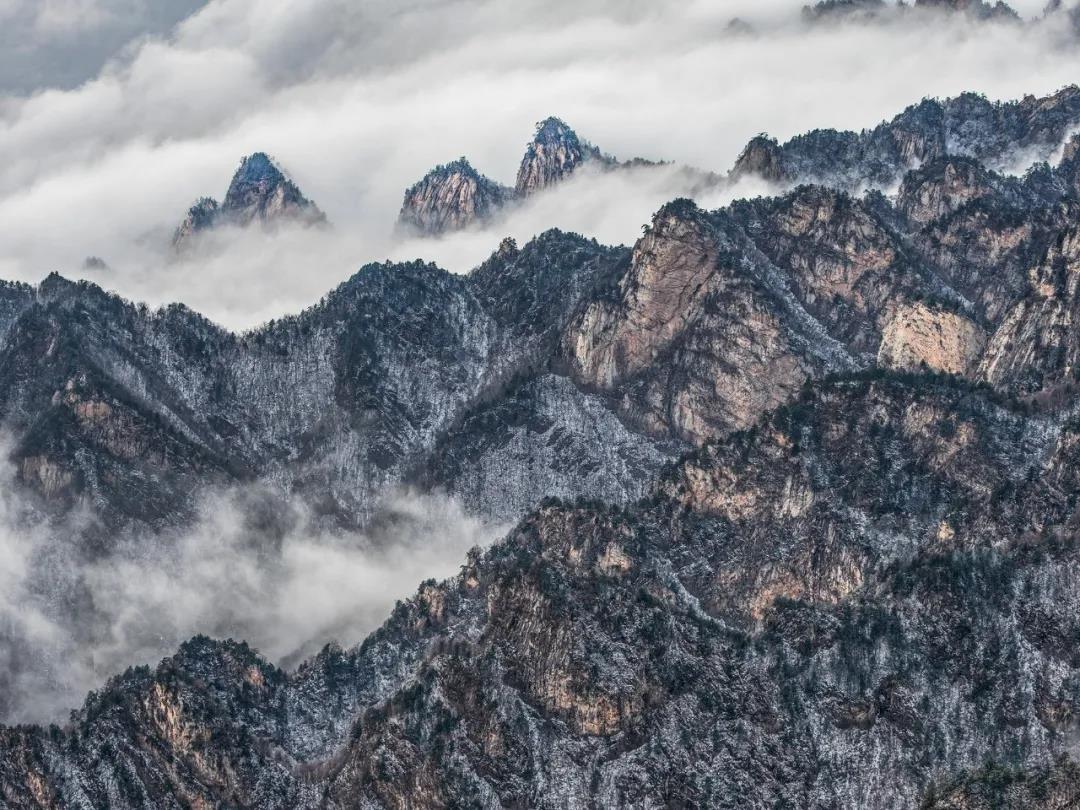 站在海拔2216的“中原極頂”,向遠(yuǎn)望去,群山被積雪覆蓋,本就是水墨般的仙境 ,再加上磅礴的云海,更是增添了萬(wàn)分壯觀!