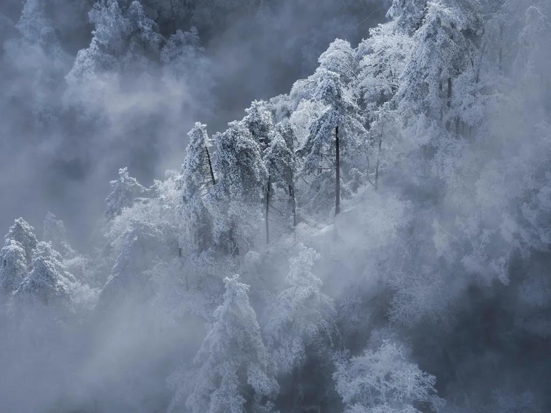 去過白云山的人,都會(huì)震撼于它的磅礴氣勢(shì),白色的雪,黑色的勁松,跌宕起伏的山勢(shì),婉如天地間一副濃墨潑就的山水畫,引領(lǐng)著大家走進(jìn)如夢(mèng)如幻的冰雪世界。