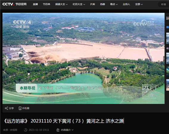11月10日,中央廣播電視總臺(tái)、中文國(guó)際頻道(CCTV-4)《遠(yuǎn)方的家》百集系列節(jié)目《天下黃河》第73集《黃河之上 濟(jì)水之源》播出。