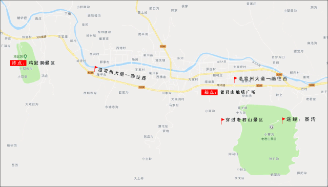 賽道路線:地質(zhì)廣場(起點)——老君山景區(qū)——寨溝——鸞州大道——雞冠洞景區(qū)(終點)