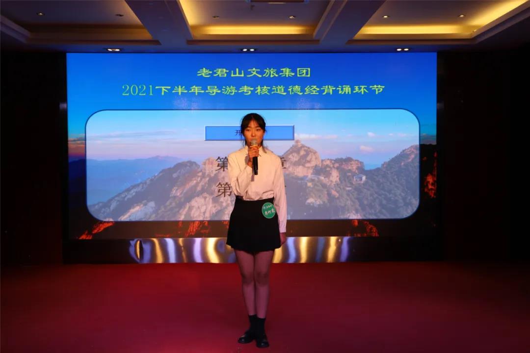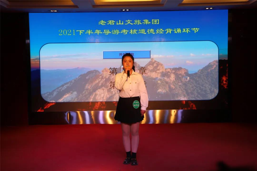 此次將《道德經(jīng)》背誦納入導(dǎo)游定級(jí)考核,導(dǎo)游員每人現(xiàn)場(chǎng)抽取兩章道德經(jīng)進(jìn)行背誦,81章《道德經(jīng)》,五千箴言,在導(dǎo)游員的口中娓娓道來(lái)。
