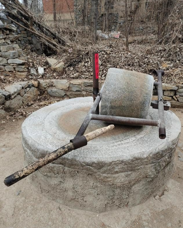 離井不遠(yuǎn),緊挨"孬叔"的院子傍還有一個(gè)(座)石攆。沒有機(jī)械的年代當(dāng)谷子成熟時(shí),鄉(xiāng)親們將曬干了的谷子倒在碾盤用石磙一遍遍的碾壓,將皮去掉,用簸萁簸出皮,留下黃色的顆粒,稱為小米。谷子多時(shí),用牛或驢套上套,將眼睛蒙上布,稱其為"拉碾"時(shí)間久了碾道里會(huì)出現(xiàn)不同的驢(牛)蹄子印。因此,在當(dāng)?shù)赜幸痪渲V語(yǔ),"碾(磨)道里找驢蹄,一找一個(gè)準(zhǔn)兒"意為抓一個(gè)人的錯(cuò),那是十拿九穩(wěn)的事。小時(shí)候,我曾驚詫于為什么不用馬拉碾,而用驢或牛拉碾(磨)呢?老人們回答說,馬的性子較烈,不適宜干拉碾、磨的活。而驢和牛不一樣,有股犟勁兒,套上套,將其蒙住眼,它們就會(huì)不停地走下去,直到人們喝令停止才住腳。因此,當(dāng)?shù)卣f誰干活任勞任怨時(shí)就比喻象牛馬一樣老實(shí)。