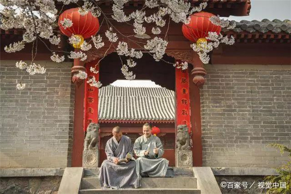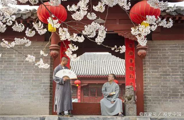 櫻花開滿枝頭,少林武僧們相互交談。寺院始建于北魏太和年間(公元495年),是中國(guó)漢傳佛教的“禪宗祖庭”和少林武術(shù)的發(fā)源地,被譽(yù)為“天下第一名剎”。