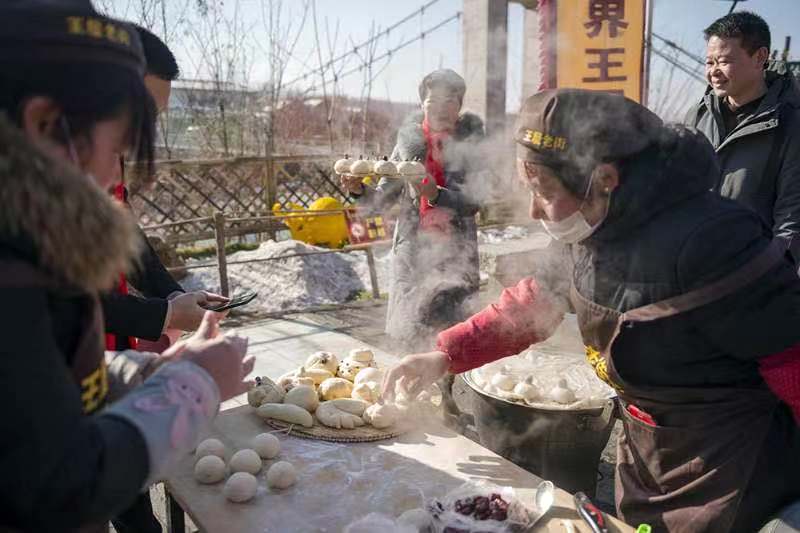 啟動(dòng)儀式現(xiàn)場(chǎng),五龍口景區(qū)來(lái)的《西游仙魔鬧新春》、《美猴王真人秀》等精彩紛呈的文藝節(jié)目引來(lái)觀眾陣陣掌聲;濟(jì)源籍書法家揮毫潑墨,聯(lián)手寫春聯(lián)送現(xiàn)場(chǎng)觀眾,老手藝人們蒸花饃、烤爐饃,展示著中國(guó)最傳統(tǒng)的美食技藝。
