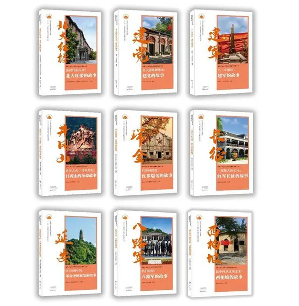 叢書(shū)共9種,分別是《新時(shí)代的先聲:北大紅樓的故事》《開(kāi)天辟地創(chuàng)偉業(yè):建黨的故事》《八一軍旗紅:建軍的故事》《星星之火,可以燎原:井岡山的革命故事》《共和國(guó)搖籃:紅都瑞金的故事》《一部偉大的史詩(shī):紅軍長(zhǎng)征的故事》《紅星照耀中國(guó):革命圣地延安的故事》《抗日中堅(jiān):八路軍的故事》《新中國(guó)從這里走來(lái):西柏坡的故事》。叢書(shū)先后入選國(guó)家新聞出版署“十三五”重點(diǎn)圖書(shū)規(guī)劃項(xiàng)目、中宣部主題出版重點(diǎn)出版物選題。