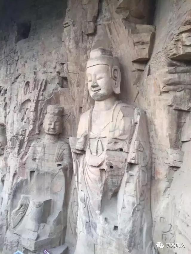 這是三尊少見的立佛,連佛衣上的細(xì)膩的紋理都被雕刻出來了,他們微笑的看著來往的眾生,如此祥和。然而直立的身軀依舊拉開了佛與人的距離,佛,終究是佛。需要敬仰。