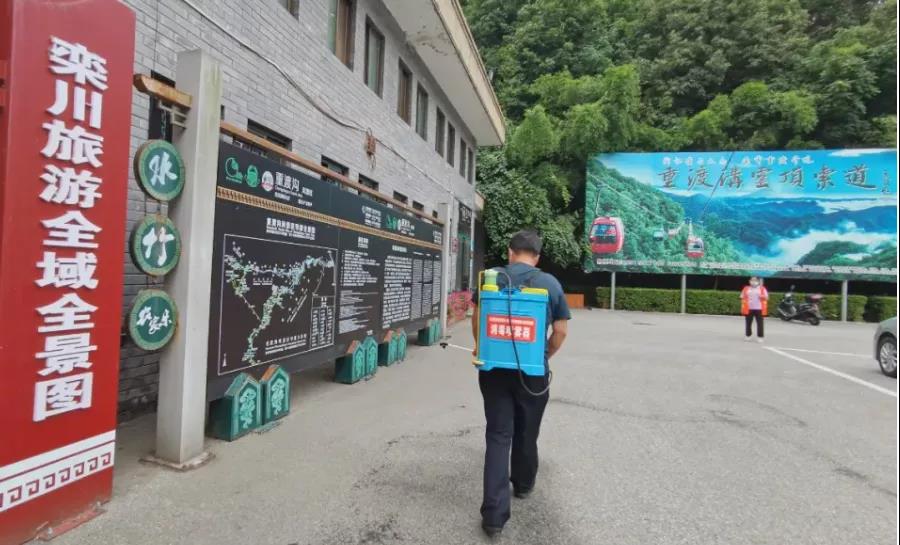 景區(qū)第一時間升級防控措施,落實、排查、登記、上報,及時掌握景區(qū)工作人員的最新動態(tài);黨員沖鋒在一線,卡點值守,構建聯(lián)防聯(lián)控;每日對景區(qū)進行全面消殺,確保人員安全、環(huán)境安全。