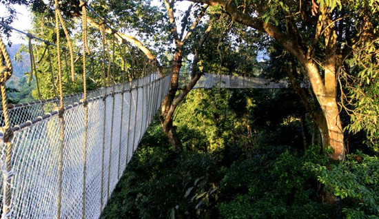 望天樹景區(qū)是游客經(jīng)常去的景點。該景區(qū)位于勐臘縣城東北補蛙國家自然保護區(qū)內(nèi),景區(qū)內(nèi)的“空中走廊”一定要試一下,走廊長2.5公里,高20米,是用粗大的鐵索在高大的望天樹之間連接建成的,夠膽量就上吧。