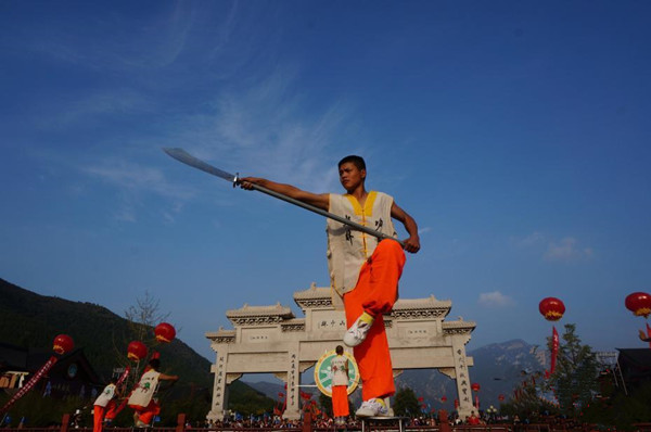背部碎石,頭斷鋼條,單指碎碗,紙牌破氣球……塔溝武校藝術(shù)表演團(tuán)學(xué)員的表演讓人大開(kāi)眼界。少林寺景區(qū)內(nèi),一系列的表演也讓人目不暇接。