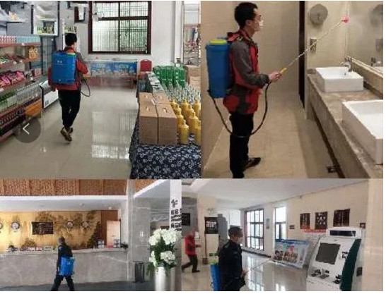 景區(qū)嚴(yán)格執(zhí)行二十四小時輪流值班制度,對所有員工進行體溫監(jiān)測,在做好自身防護的同時,嚴(yán)防死守。安排專人對重點區(qū)域:游客服務(wù)中心、售票處、咨詢處、景區(qū)廁所、運營設(shè)備、休息區(qū)等全面消毒。