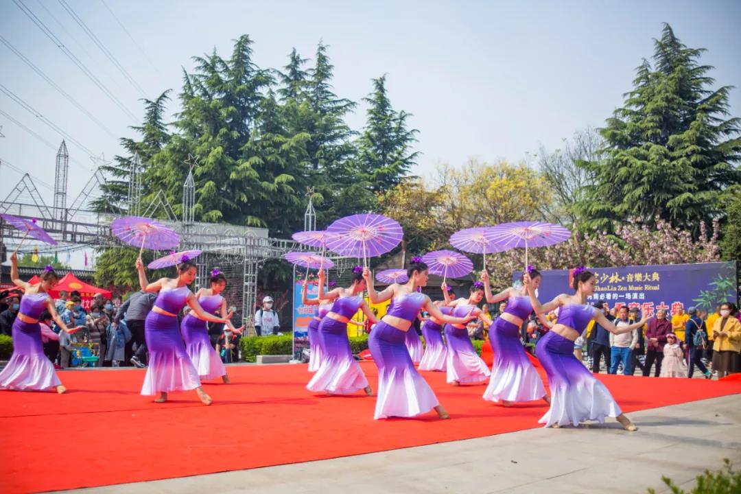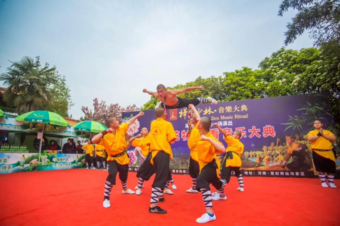 少林童子功、鐵布衫·三槍刺身、集體鎮(zhèn)山棍、鐵掌劈磚、拳法套路、刀槍劍戟十八般兵器等等輪番上陣,吸引大量游客駐足觀看。除了精彩震撼的武術(shù)表演,還有美麗的舞蹈演員帶來的舞蹈以及牧羊女帶來的經(jīng)典歌曲《牧羊曲》。