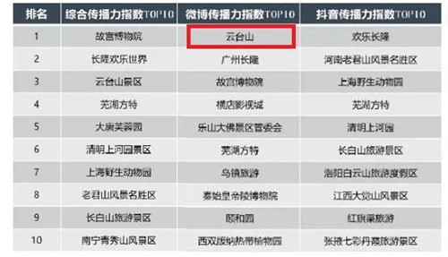近日,文旅產(chǎn)業(yè)指數(shù)實驗室基于對全國5A景區(qū)微信公眾號和微博傳播力及中國社會科學(xué)院中國輿情調(diào)查實驗室網(wǎng)絡(luò)新媒體傳播力指數(shù)綜合評價的結(jié)果,發(fā)布了2021年5月全國5A景區(qū)新媒體傳播力指數(shù)TOP10榜單。云臺山景區(qū)位列多項榜單!其中,微博傳播力指數(shù)排名全國第一;綜合傳播力指數(shù)位列三甲,全省第一。