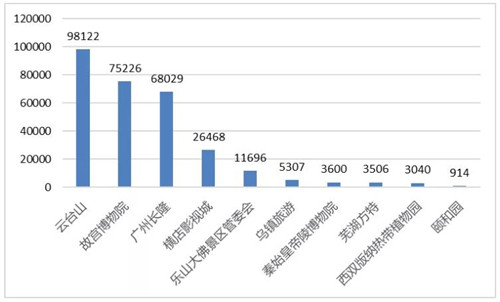 5A景區(qū)微博傳播力指數(shù)TOP10點贊數(shù)量統(tǒng)計