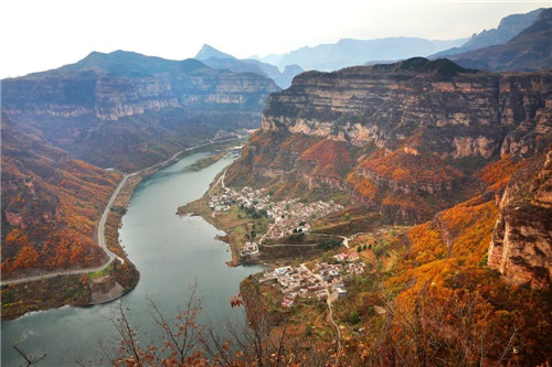 初冬時節(jié),太行山才釋放了她原有的斑斕,無論是彎彎曲曲的山路,還是迎風(fēng)私語的樹木,都煥發(fā)出別樣精彩。沿著崎嶇的山道,欣賞兩岸的景色,高山和峽谷清晰可見,秋日陽光下,流連在金黃色的世界里,醉迷在壯麗秀美的大山中。