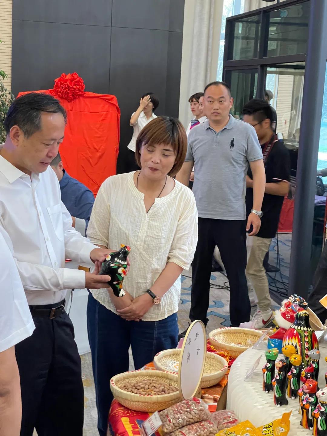 河南省文化和旅游廳廳長姜繼鼎在?h非遺展臺聽取浚縣非遺展品介紹