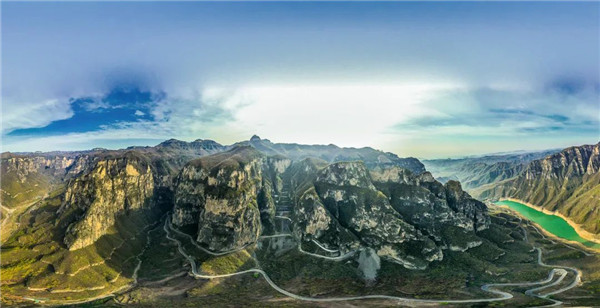 徒步測繪,人工開鑿,開山造路,十年修筑,245個彎道,8條U形隧洞,總長4831米,峰石畫廊疊彩洞,曲洞連環(huán),首尾相連,穿梭于崖壁之間,俯瞰群山連綿,云霧繚繞,不見盡頭。
