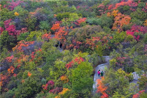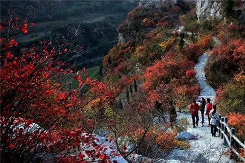 來來往往的游客穿行在紅葉畫卷中,人與紅葉相映紅~