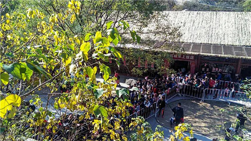 索道乘坐處也是人山人海,不過游客等候秩序有條不紊。