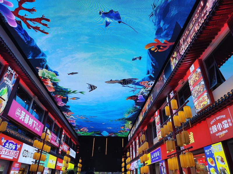 在這里,一幕幕震撼人心的唯美動態(tài)畫面伴隨著聲、光、電的立體科技特效,給人留下難以忘懷的印象。時尚前衛(wèi)的天幕秀,不僅讓這里的夜晚更加繽紛璀璨,也讓來到這里的人們喜看天空云卷云舒,欣賞四季景色變化,讓飛鳥游魚以不同的姿態(tài)呈現(xiàn)人們眼前,讓人在光影變幻間,度過一段非同尋常的歡樂時光。