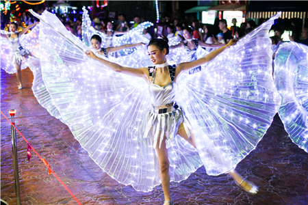 游樂項(xiàng)目、百萬海洋球、繽紛演出,將填滿游客白天的歡樂時(shí)光。方特夢幻王國的篝火狂歡將歡樂在黑夜延續(xù)。夜幕降臨,主會(huì)場篝火熊熊燃起——富有儀式感的點(diǎn)火儀式、粗獷的火把舞、灑脫的甩發(fā)舞、互動(dòng)滿滿的竹竿舞等,將帶游客感受來自原始時(shí)代的野性與歡樂。