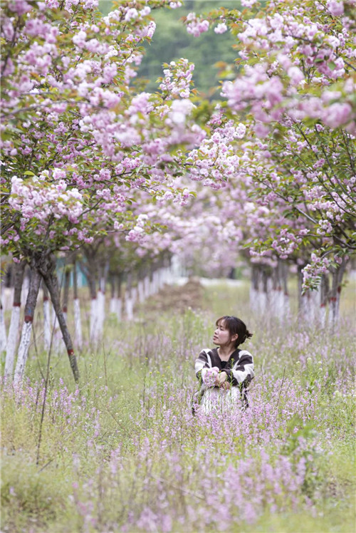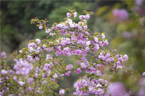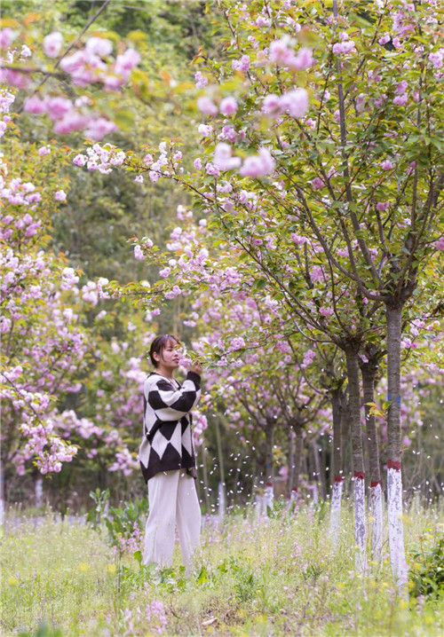 兩年前只為那句“我栽一段櫻色贈(zèng)你,好讓你不遜于這人間錯(cuò)落煙火”,兩年后栽種的這千株關(guān)山櫻滿樹繁花、粉團(tuán)緊簇,好似“ 妙齡櫻花楚楚開,白衣紅裙等君來”,等君一起慢品這人間煙火色。