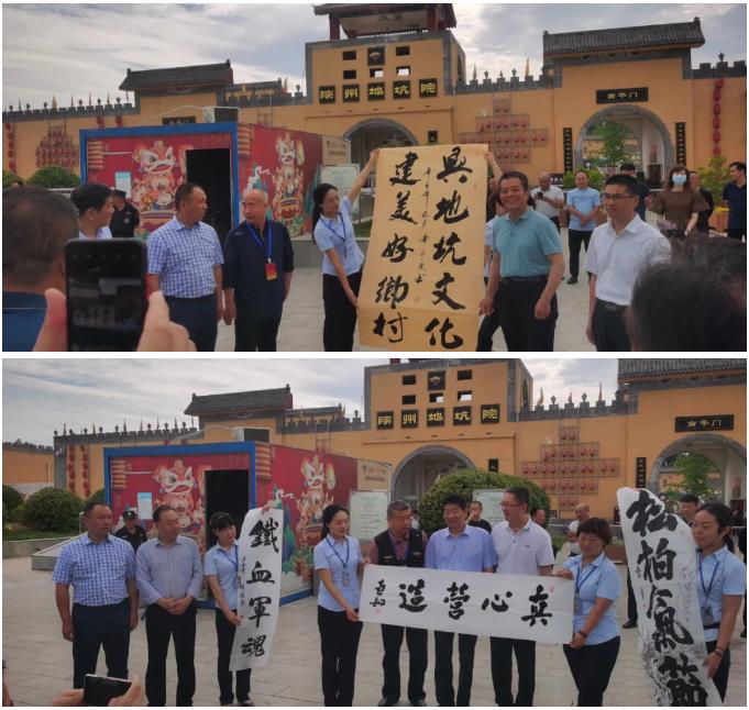 紅色六月,翰墨飄香。6月20日,由中共三門峽市委宣傳部、中共通俗文藝研究會聯(lián)合主辦的“三門峽市慶祝中國共產(chǎn)黨成立100周年全國 ‘ 百名百幅 ’ 書畫展暨榜書邀請展”一行百余名嘉賓抵達陜州地坑院景區(qū)開展調(diào)研采風活動。