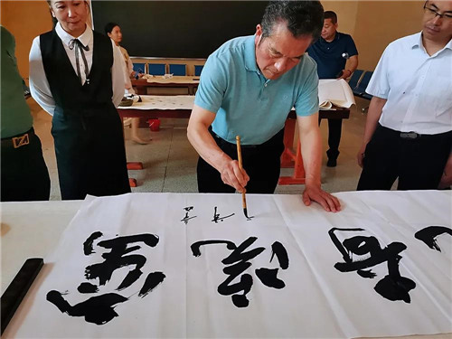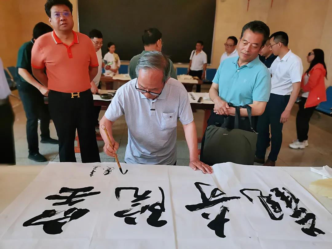 嘉賓們在景區(qū)前廣場進行書畫捐贈環(huán)節(jié)。