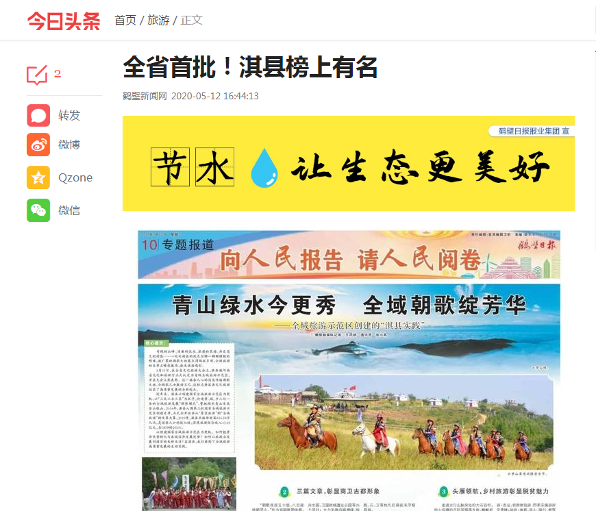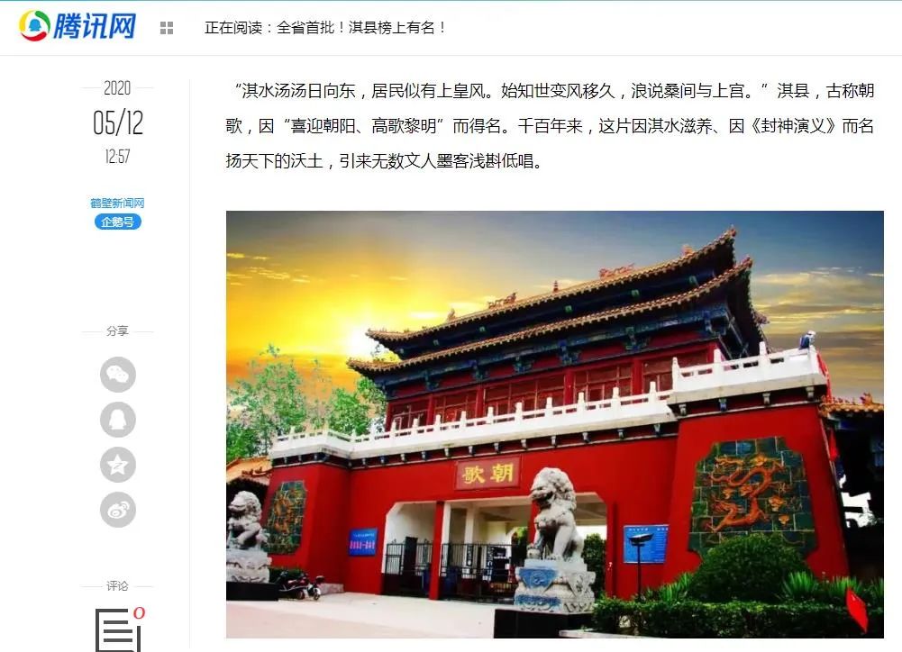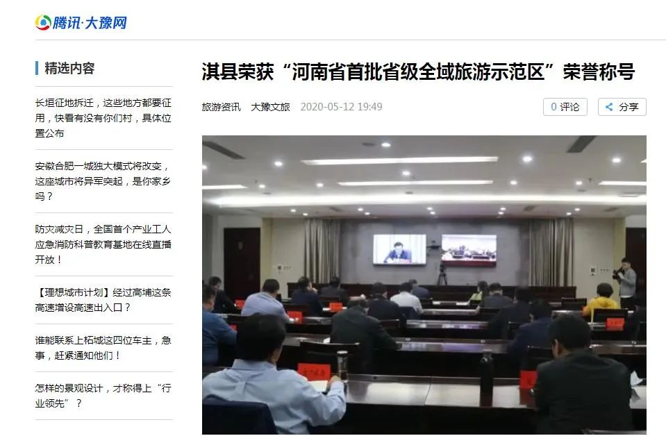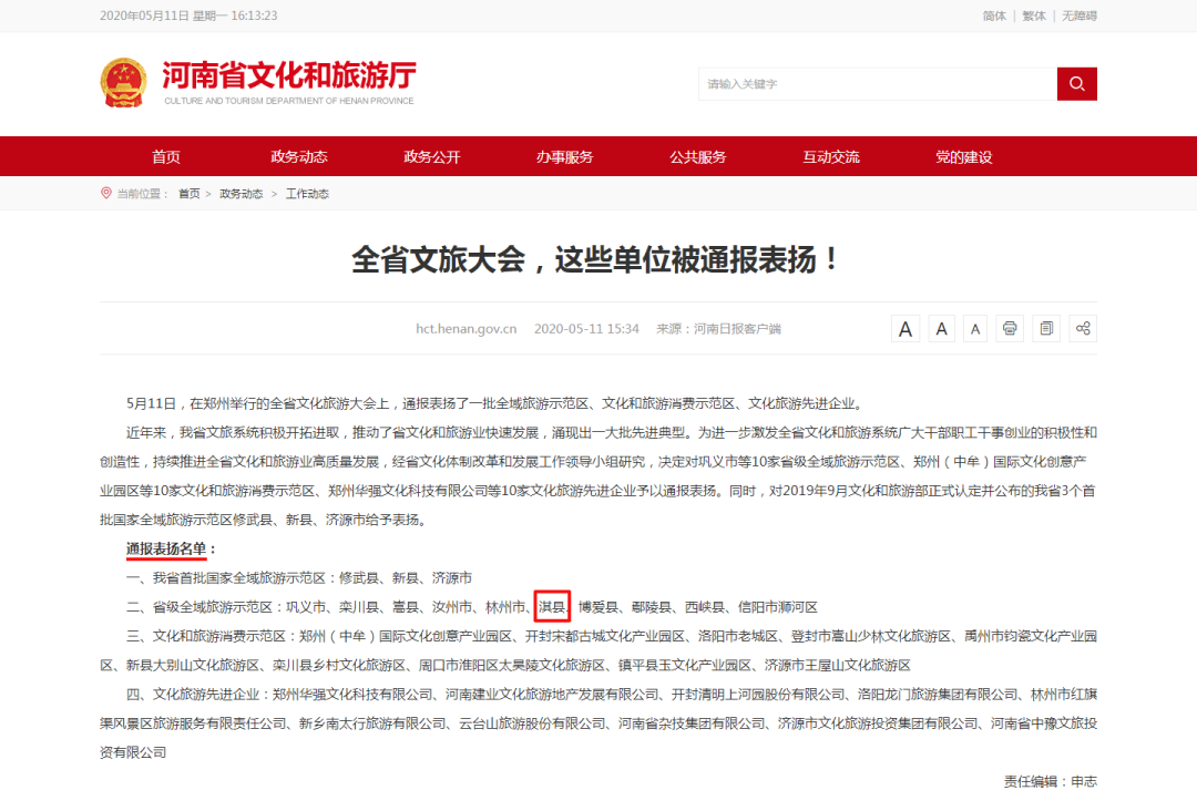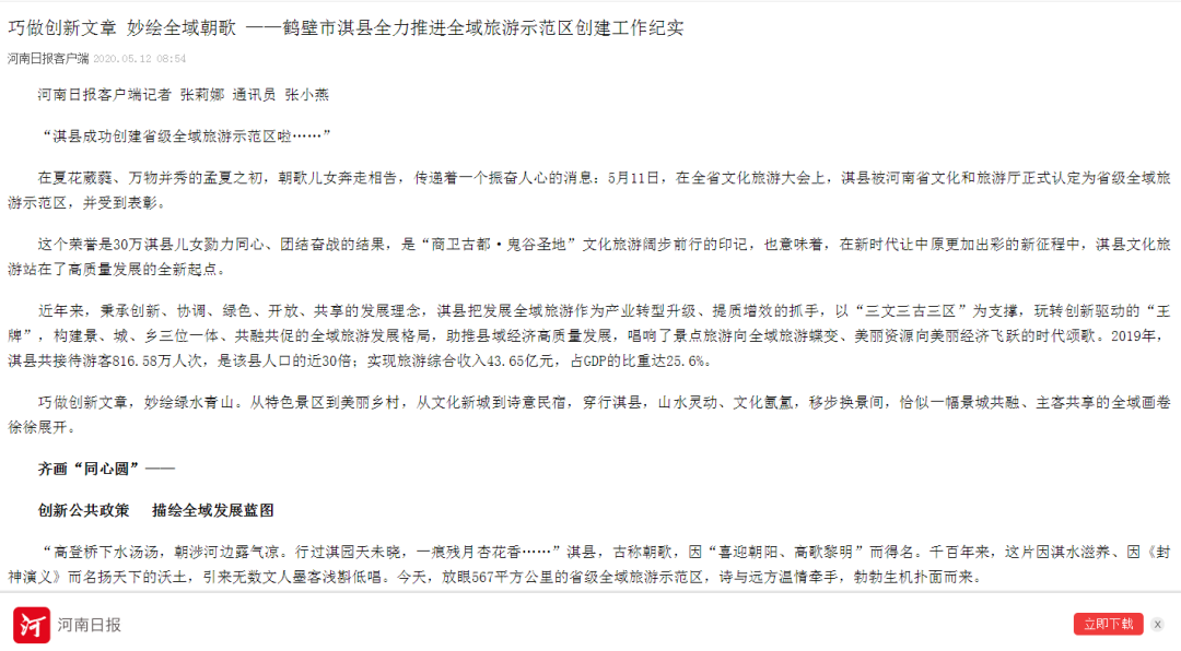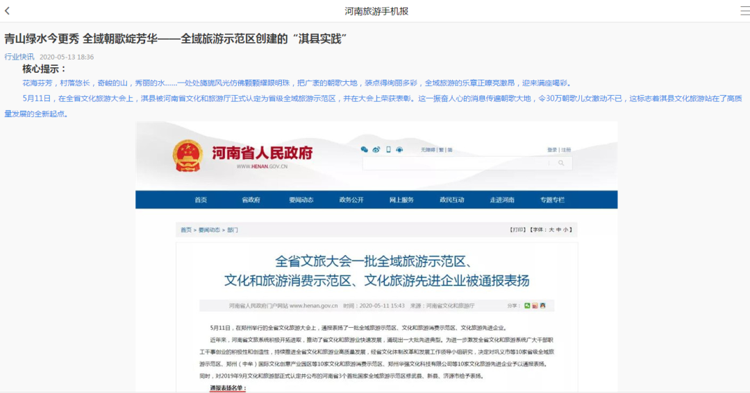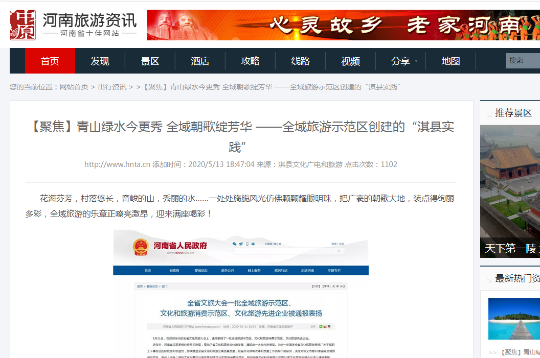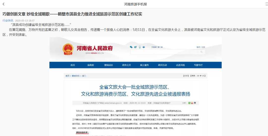 當天,淇縣還榮登河南省人民政府、河南省文化和旅游廳官方網(wǎng)站。