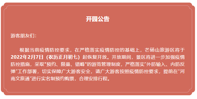 【芒碭山旅游區(qū)疫情防控須知】