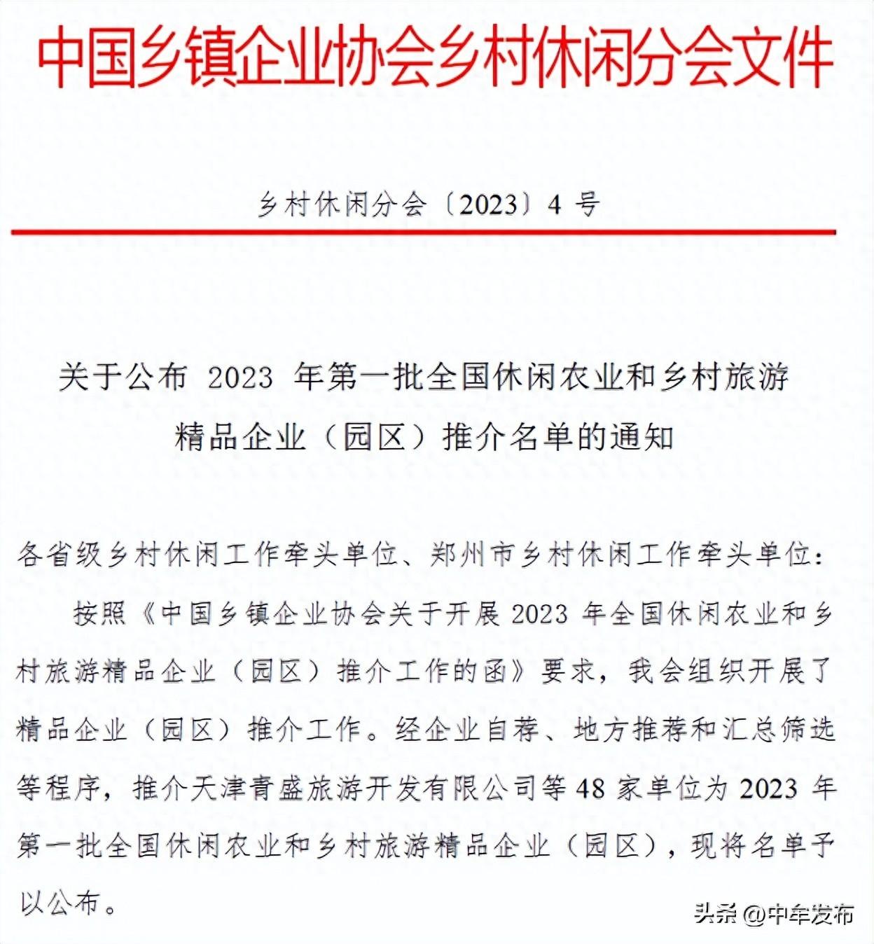 近日,中國鄉(xiāng)鎮(zhèn)企業(yè)協(xié)會(huì)鄉(xiāng)村休閑分會(huì)公布了《2023年第一批全國休閑農(nóng)業(yè)和鄉(xiāng)村旅游精品企業(yè)(園區(qū))推介名單》,中牟縣2家休閑農(nóng)業(yè)經(jīng)營單位獲得2023年全國休閑農(nóng)業(yè)與鄉(xiāng)村旅游星級企業(yè)(園區(qū))榮譽(yù)稱號(hào),其中,河南晨明生態(tài)農(nóng)業(yè)科技有限公司獲評四星級園區(qū),河南頂頂牛教育科技有限公司獲評三星級園區(qū)。