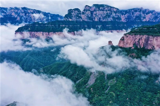 這場雨,酣暢淋漓,沖洗了山川,散盡了暑氣,也只有在此時才能看到如練的瀑布直瀉峽谷,如潮的云?澙@群峰。