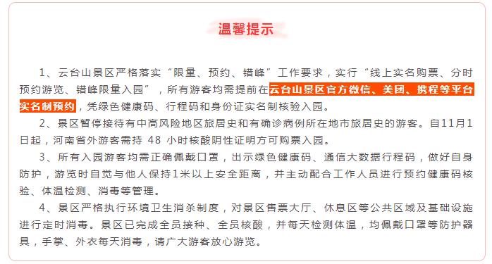 連續(xù)34天!云臺(tái)山免門票福利覆蓋