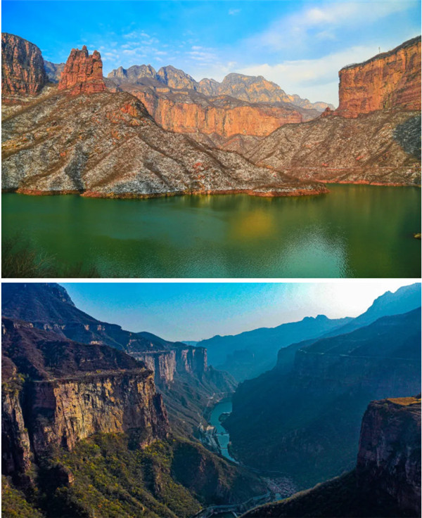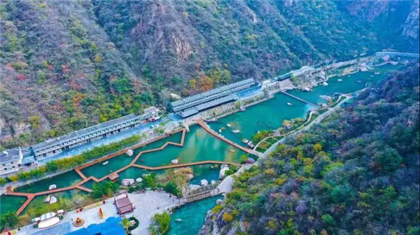 寶泉的天空,藍的是那么純粹、空曠,朵朵白云點綴,寶泉藍給這個冬日添了幾分清新,藍天白云下,一山、一水、一竹排,顯得別樣精致!