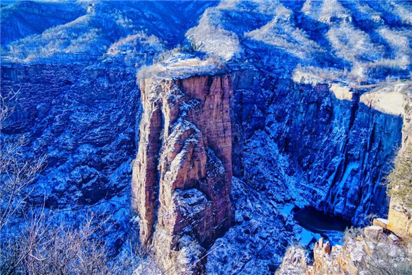 在懸崖峭壁旁,流水被時間和溫度的施法下停留在此,看群山的粉妝玉砌,望著天空的云霧繚繞,這里的一切都那么漫不經(jīng)心,卻又恰巧戳中內(nèi)心中最柔弱的一處。