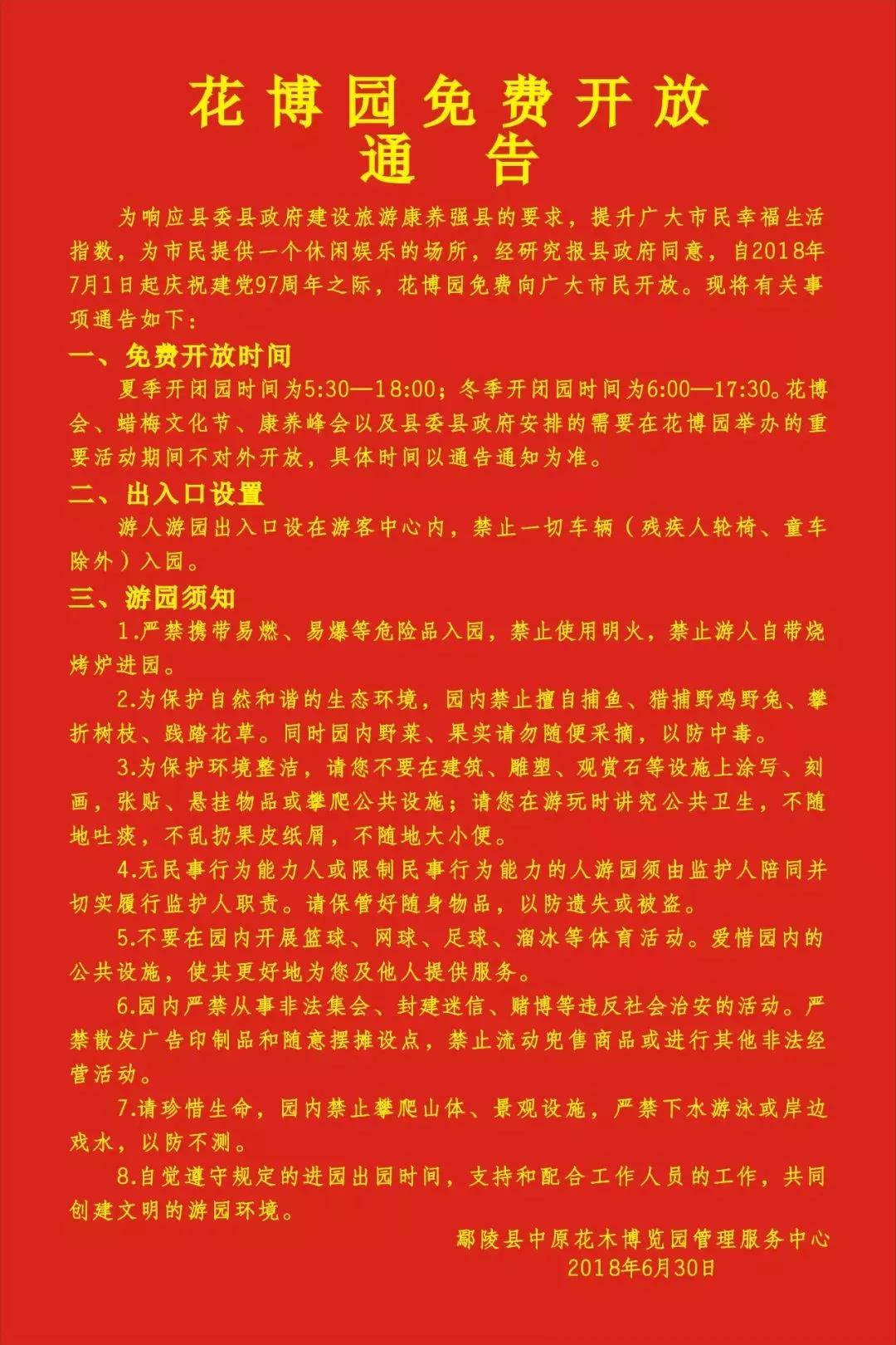 6月30日,鄢陵縣中原花木博覽園管理服務(wù)中心發(fā)布了一篇“花博園免費開放通告”,宣布7月1日起,除花博會、二梅展、康養(yǎng)峰會以及縣委縣政府安排的需要在花博園舉辦的重要活動期間,鄢陵花博園免費開放!