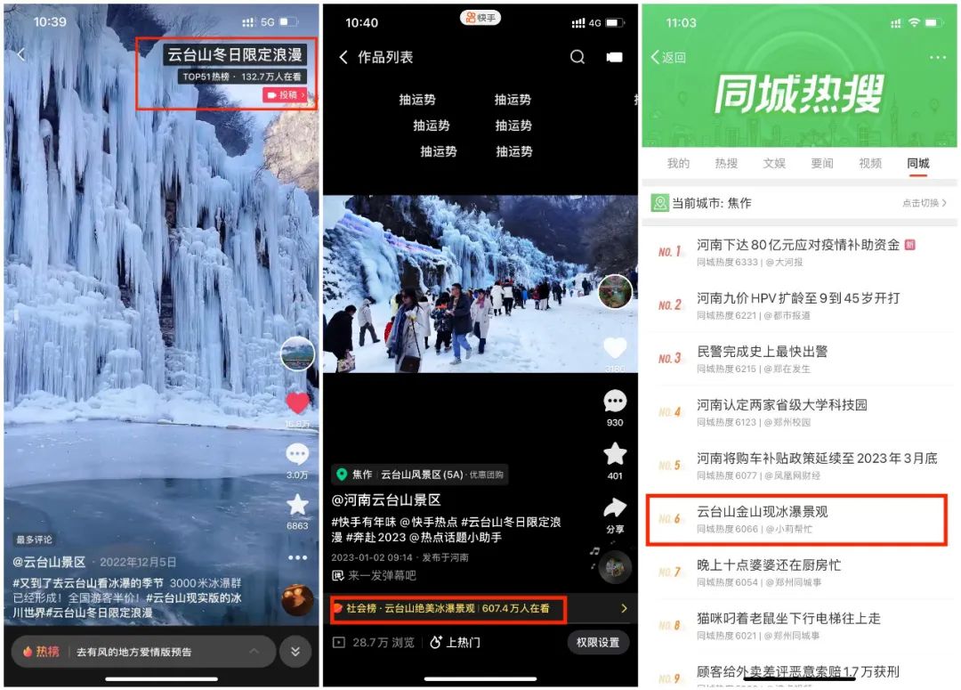 云臺山太絕了!全網(wǎng)刷屏峽谷冰瀑群!抖音話題5000萬+!快手、微博熱點不斷!多平臺流量疊加!冰雪季熱度飆升!云臺山冰雪節(jié)誰拍誰火!再次出圈!