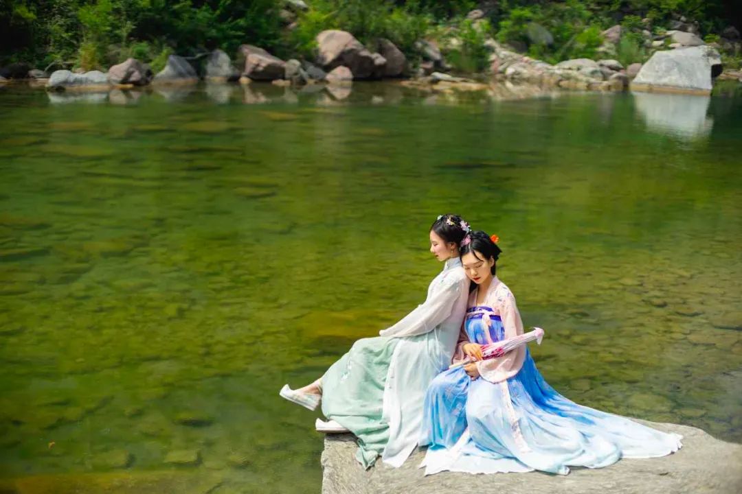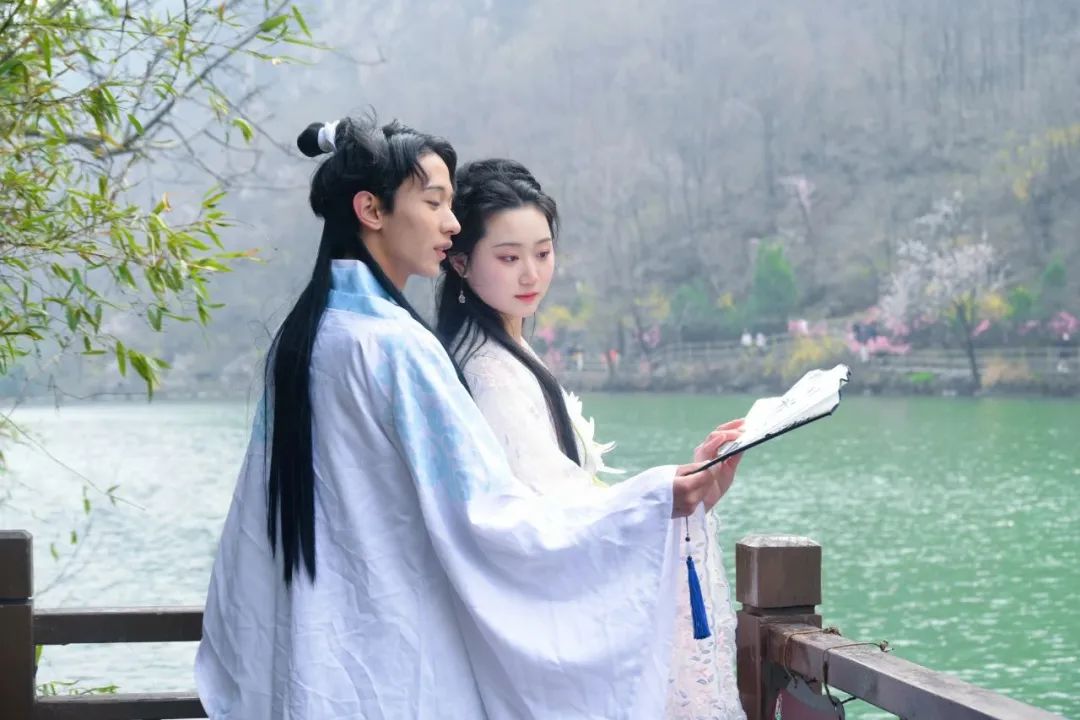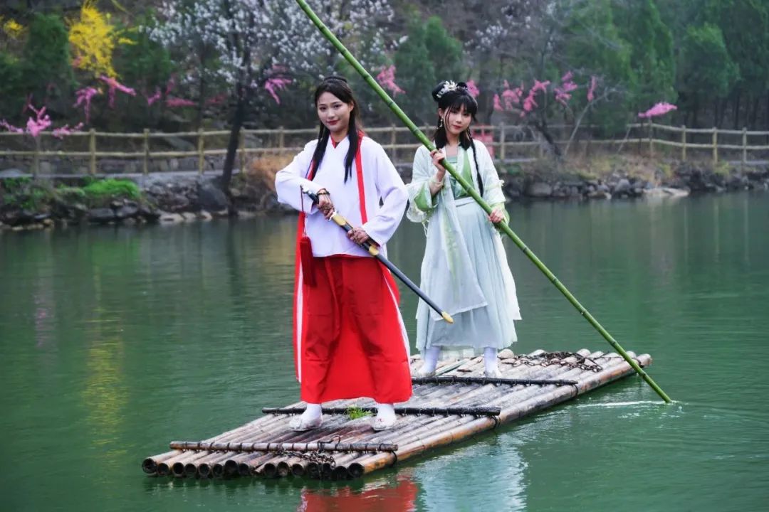 穿著漢服,乘一座竹筏,歇一座涼亭,風(fēng)吹拂著衣袖,欣賞著漣漪,撐傘走在石橋上,仿佛做了一個古時的夢。