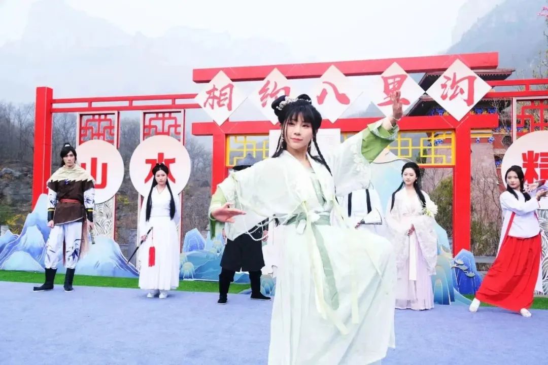 襦裙霓裳,曲裾輕舞,百花齊放,山河為情景,所見為江湖,八里溝春景節(jié)開啟沉浸式春游體驗(yàn),重現(xiàn)武俠世界。